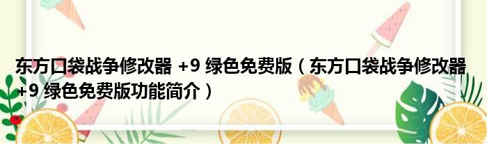 东方口袋战争修改器 +9 绿色免费版(东方口袋战争修改器 +9 绿色免费版功能简介)