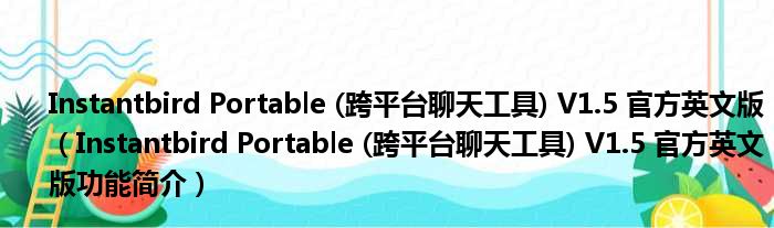 导读 大家好,关于Instantbird Portable (跨平台聊天工具) V1 5 官方英文版,Instantbird Portable (跨平台聊天工具) V1 5 官方英文版功