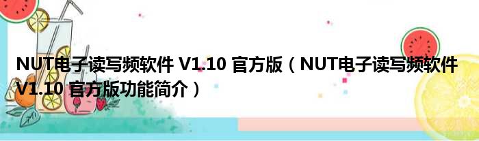 NUT电子读写频软件 V1.10 官方版(NUT电子读写频软件 V1.10 官方版功能简介)