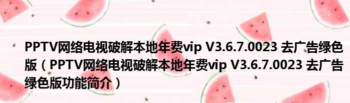 导读 大家好,关于PPTV网络电视破解本地年费vip V3 6 7 0023 去广告绿色版,PPTV网络电视破解本地年费vip V3 6 7 0023 去广告绿色版功能简介
