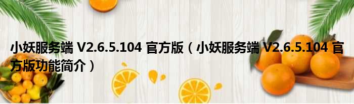导读 大家好,关于小妖服务端 V2 6 5 104 官方版,小妖服务端 V2 6 5 104 官方版功能简介这个很多人还不知道,小勒来为大家解答以上的问题,现