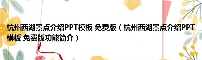 杭州西湖景点介绍PPT模板 免费版(杭州西湖景点介绍PPT模板 免费版功能简介)