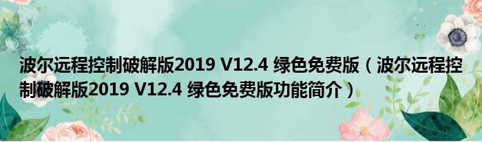导读 大家好,关于波尔远程控制破解版2019 V12 4 绿色免费版,波尔远程控制破解版2019 V12 4 绿色免费版功能简介这个很多人还不知道,小勒来为