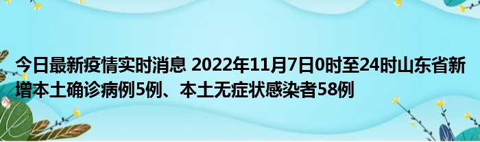 您的位置:首页 >动态频道 > 聚焦疫情 > 今日最新疫情实时消息 2022年11月7日0时至24时山东省新增本土确诊病例5例、本土无症状感染者58例 2022-11-16 15:24:17 • 来源: 导读 免责声明:本文由用户上传,如有侵权请联系删除! 上一篇:今日最新疫情实时消息 北京通州新增1例确诊和4例无症状感染者,主要风险点位公布 下一篇:今日最新疫情实时消息 北京昌平新增4名确诊病例和4名无症状感染者,风险点位公布