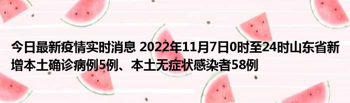 您的位置:首页 >动态频道 > 聚焦疫情 > 今日最新疫情实时消息 2022年11月7日0时至24时山东省新增本土确诊病例5例、本土无症状感染者58例 2022-11-16 16:04:13 • 来源: 导读 免责声明:本文由用户上传,如有侵权请联系删除! 上一篇:今日最新疫情实时消息 北京通州新增1例确诊和4例无症状感染者,主要风险点位公布 下一篇:今日最新疫情实时消息 北京昌平新增4名确诊病例和4名无症状感染者,风险点位公布