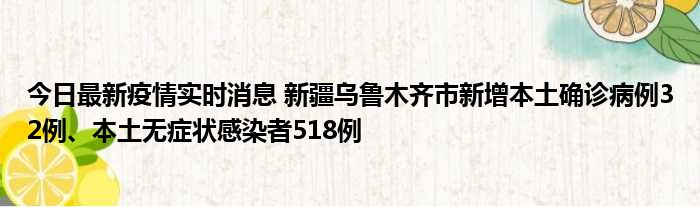 今日最新疫情实时消息 新疆乌鲁木齐市新增本土确诊病例32例、本土无症状感染者518例