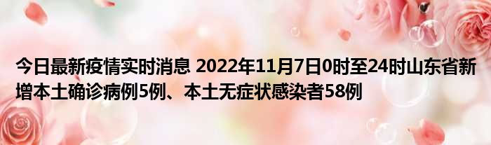 您的位置:首页 >动态频道 > 聚焦疫情 > 今日最新疫情实时消息 2022年11月7日0时至24时山东省新增本土确诊病例5例、本土无症状感染者58例 2022-11-16 19:20:14 • 来源: 导读 免责声明:本文由用户上传,如有侵权请联系删除! 上一篇:今日最新疫情实时消息 北京通州新增1例确诊和4例无症状感染者,主要风险点位公布 下一篇:今日最新疫情实时消息 北京昌平新增4名确诊病例和4名无症状感染者,风险点位公布