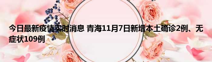 今日最新疫情实时消息 青海11月7日新增本土确诊2例、无症状109例
