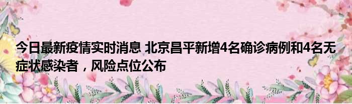 今日最新疫情实时消息 北京昌平新增4名确诊病例和4名无症状感染者,风险点位公布