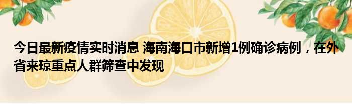 今日最新疫情实时消息 海南海口市新增1例确诊病例,在外省来琼重点人群筛查中发现