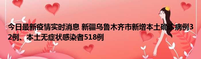 今日最新疫情实时消息 新疆乌鲁木齐市新增本土确诊病例32例、本土无症状感染者518例