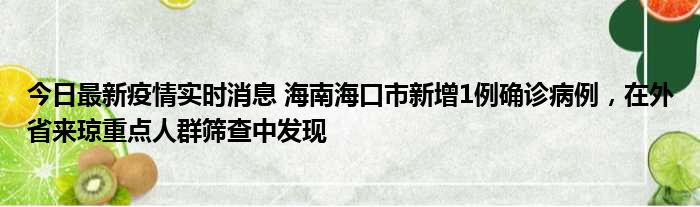今日最新疫情实时消息 海南海口市新增1例确诊病例,在外省来琼重点人群筛查中发现