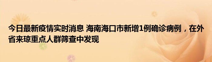 今日最新疫情实时消息 海南海口市新增1例确诊病例,在外省来琼重点人群筛查中发现