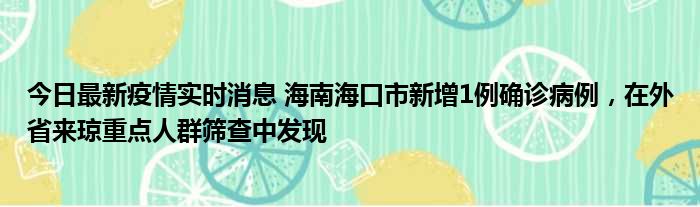 今日最新疫情实时消息 海南海口市新增1例确诊病例,在外省来琼重点人群筛查中发现
