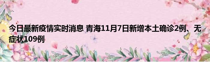 今日最新疫情实时消息 青海11月7日新增本土确诊2例、无症状109例