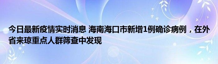 今日最新疫情实时消息 海南海口市新增1例确诊病例,在外省来琼重点人群筛查中发现