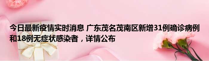 今日最新疫情实时消息 广东茂名茂南区新增31例确诊病例和18例无症状感染者,详情公布