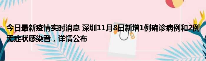据深圳卫健委,11月8日0-24时,深圳新增1例新冠肺炎确诊病例和2例新冠病毒无症状感染者