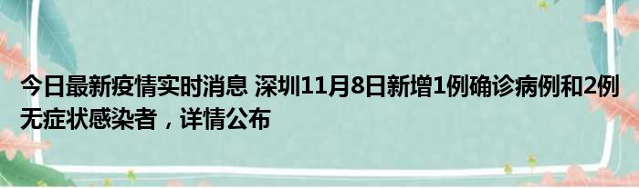 据深圳卫健委,11月8日0-24时,深圳新增1例新冠肺炎确诊病例和2例新冠病毒无症状感染者