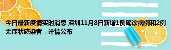 据深圳卫健委,11月8日0-24时,深圳新增1例新冠肺炎确诊病例和2例新冠病毒无症状感染者