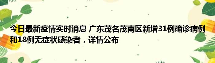 今日最新疫情实时消息 广东茂名茂南区新增31例确诊病例和18例无症状感染者,详情公布