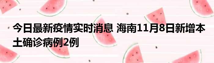 据海南卫健委,11月8日0时—24时,海南省新增本土确诊病例2例,其中,海口市1例,在外省来琼重点人群筛查中发现;三亚市1例,在隔离管控
