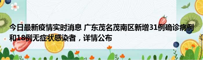 今日最新疫情实时消息 广东茂名茂南区新增31例确诊病例和18例无症状感染者,详情公布