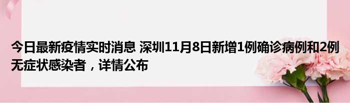 据深圳卫健委,11月8日0-24时,深圳新增1例新冠肺炎确诊病例和2例新冠病毒无症状感染者