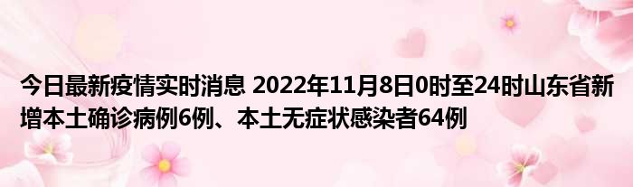 您的位置:首页 >动态频道 > 聚焦疫情 > 今日最新疫情实时消息 2022年11月8日0时至24时山东省新增本土确诊病例6例、本土无症状感染者64例 2022-11-18 11:18:37 • 来源: 导读 免责声明:本文由用户上传,如有侵权请联系删除! 上一篇:今日最新疫情实时消息 广东茂名茂南区新增31例确诊病例和18例无症状感染者,详情公布 下一篇:今日最新疫情实时消息 武汉新增2例确诊病例和34例无症状感染者,详情及轨迹公布