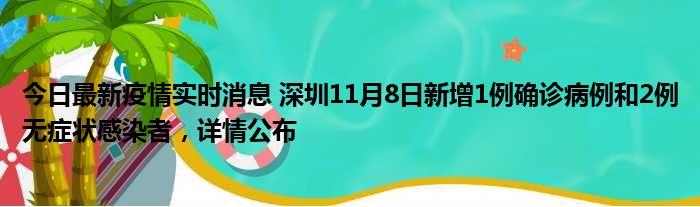 据深圳卫健委,11月8日0-24时,深圳新增1例新冠肺炎确诊病例和2例新冠病毒无症状感染者