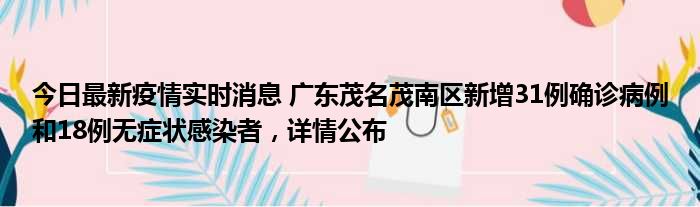 今日最新疫情实时消息 广东茂名茂南区新增31例确诊病例和18例无症状感染者,详情公布