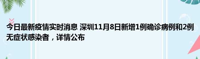 据深圳卫健委,11月8日0-24时,深圳新增1例新冠肺炎确诊病例和2例新冠病毒无症状感染者