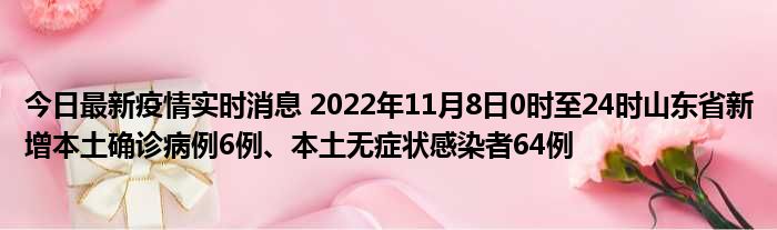 您的位置:首页 >动态频道 > 聚焦疫情 > 今日最新疫情实时消息 2022年11月8日0时至24时山东省新增本土确诊病例6例、本土无症状感染者64例 2022-11-18 12:58:14 • 来源: 导读 免责声明:本文由用户上传,如有侵权请联系删除! 上一篇:今日最新疫情实时消息 广东茂名茂南区新增31例确诊病例和18例无症状感染者,详情公布 下一篇:今日最新疫情实时消息 江西11月8日新增本土确诊病例1例、无症状感染者8例