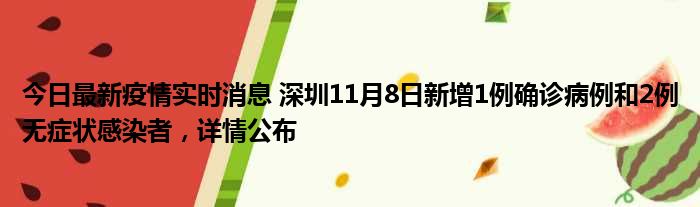 据深圳卫健委,11月8日0-24时,深圳新增1例新冠肺炎确诊病例和2例新冠病毒无症状感染者