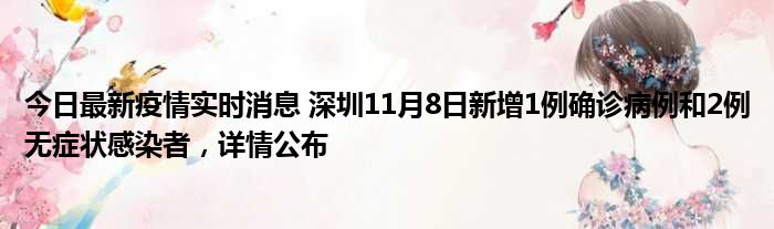 据深圳卫健委,11月8日0-24时,深圳新增1例新冠肺炎确诊病例和2例新冠病毒无症状感染者