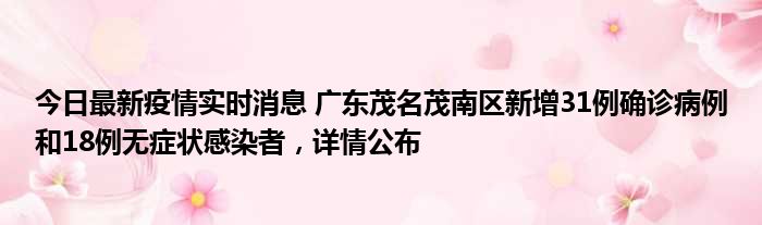 今日最新疫情实时消息 广东茂名茂南区新增31例确诊病例和18例无症状感染者,详情公布