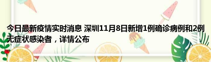 据深圳卫健委,11月8日0-24时,深圳新增1例新冠肺炎确诊病例和2例新冠病毒无症状感染者