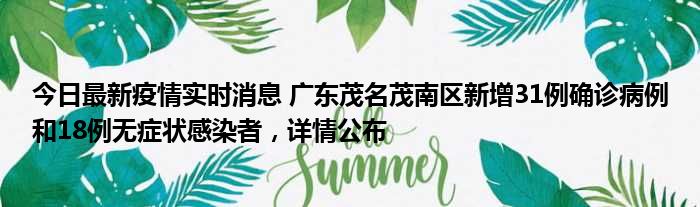 今日最新疫情实时消息 广东茂名茂南区新增31例确诊病例和18例无症状感染者,详情公布