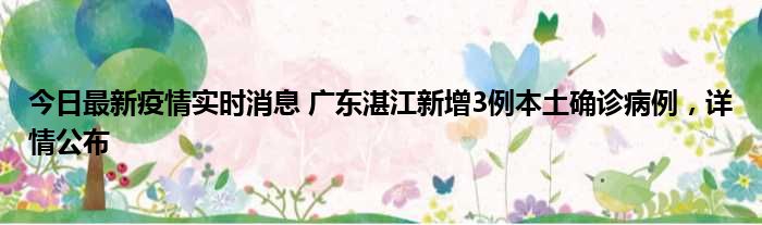 今日最新疫情实时消息 广东湛江新增3例本土确诊病例,详情公布
