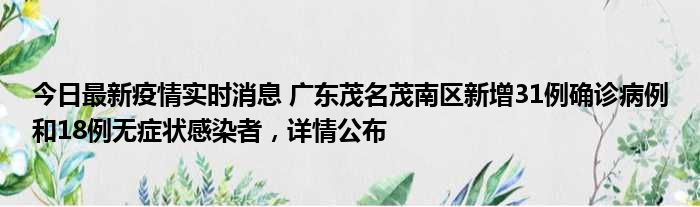 今日最新疫情实时消息 广东茂名茂南区新增31例确诊病例和18例无症状感染者,详情公布