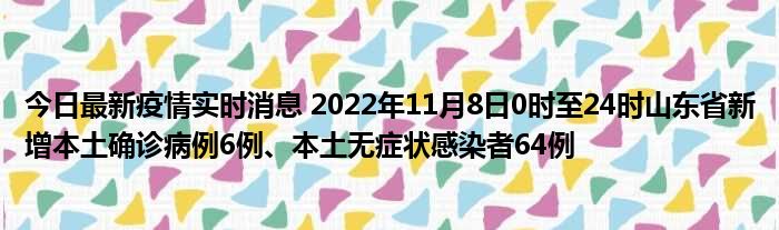 您的位置:首页 >动态频道 > 聚焦疫情 > 今日最新疫情实时消息 2022年11月8日0时至24时山东省新增本土确诊病例6例、本土无症状感染者64例 2022-11-18 20:18:14 • 来源: 导读 免责声明:本文由用户上传,如有侵权请联系删除! 上一篇:今日最新疫情实时消息 广东茂名茂南区新增31例确诊病例和18例无症状感染者,详情公布 下一篇:今日最新疫情实时消息 韩国高考在即,新冠确诊考生可在特设考场参考