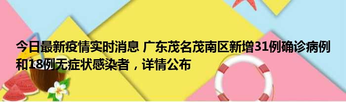 今日最新疫情实时消息 广东茂名茂南区新增31例确诊病例和18例无症状感染者,详情公布