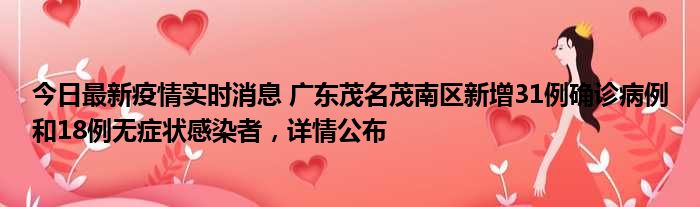 今日最新疫情实时消息 广东茂名茂南区新增31例确诊病例和18例无症状感染者,详情公布