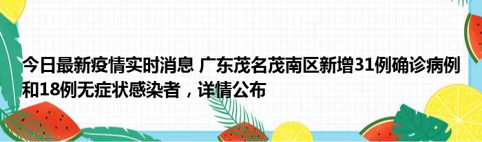 今日最新疫情实时消息 广东茂名茂南区新增31例确诊病例和18例无症状感染者,详情公布