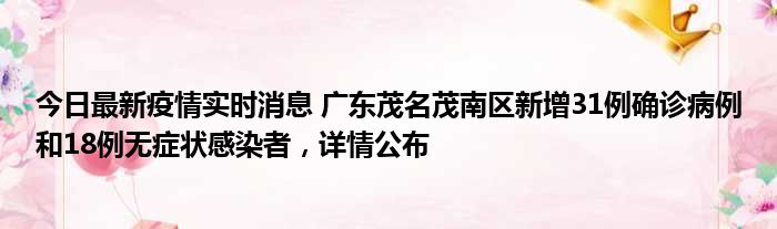 今日最新疫情实时消息 广东茂名茂南区新增31例确诊病例和18例无症状感染者,详情公布