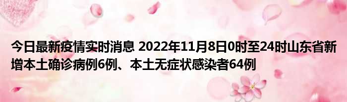 您的位置:首页 >动态频道 > 聚焦疫情 > 今日最新疫情实时消息 2022年11月8日0时至24时山东省新增本土确诊病例6例、本土无症状感染者64例 2022-11-19 00:18:14 • 来源: 导读 免责声明:本文由用户上传,如有侵权请联系删除! 上一篇:今日最新疫情实时消息 广东茂名茂南区新增31例确诊病例和18例无症状感染者,详情公布 下一篇:今日最新疫情实时消息 韩国高考在即,新冠确诊考生可在特设考场参考