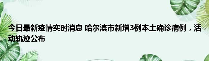 今日最新疫情实时消息 哈尔滨市新增3例本土确诊病例,活动轨迹公布