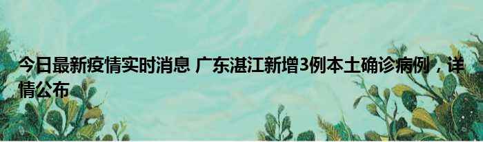 今日最新疫情实时消息 广东湛江新增3例本土确诊病例,详情公布