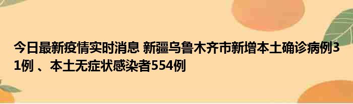 今日最新疫情实时消息 新疆乌鲁木齐市新增本土确诊病例31例 、本土无症状感染者554例