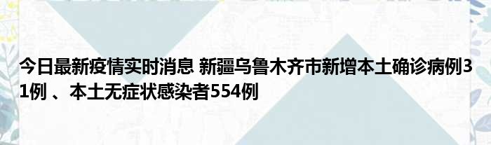 今日最新疫情实时消息 新疆乌鲁木齐市新增本土确诊病例31例 、本土无症状感染者554例